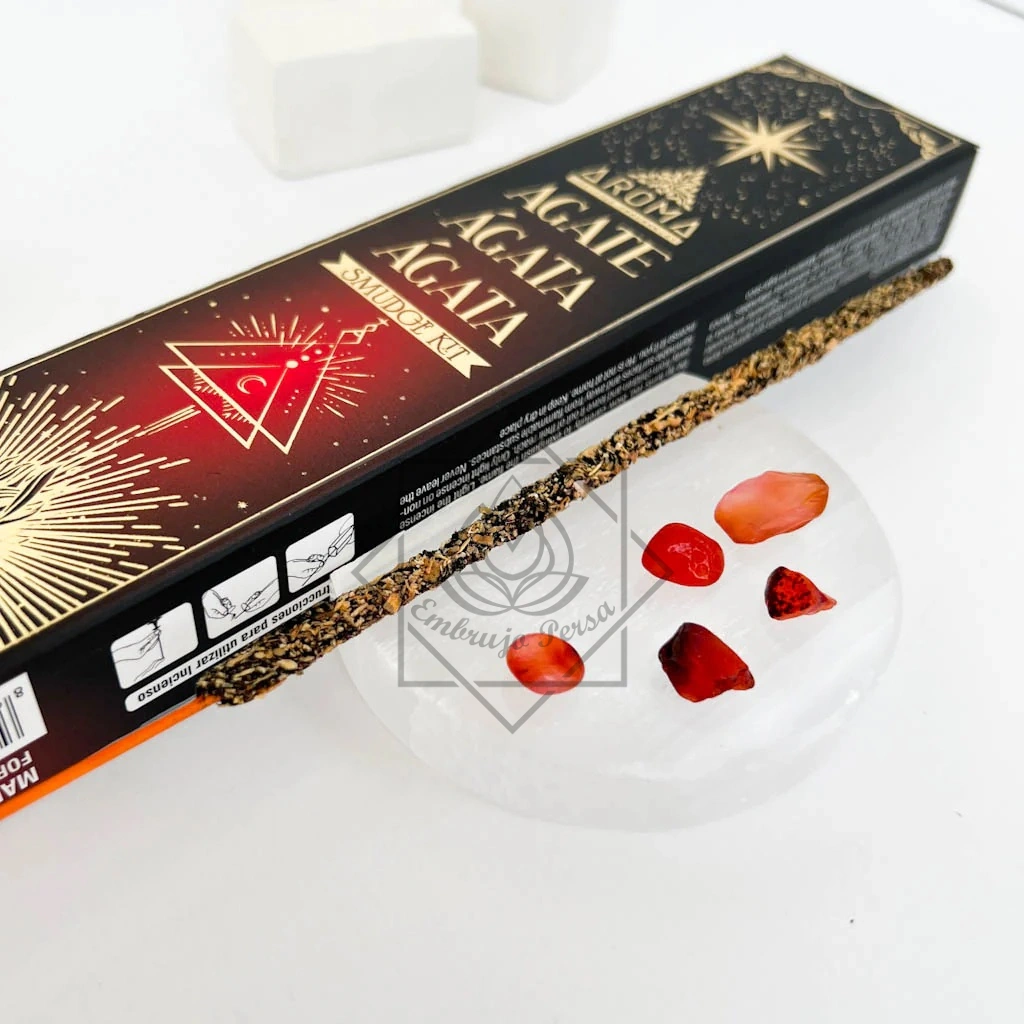 Incienso con ingredientes naturales que incluye auténticos minerales de ágata. Este mineral se caracteriza por tener grandes propiedades energéticas protectoras, fomentar la suerte e impulsar y proteger el equilibrio emocional. El ágata está conectado con la tierra y por lo tanto, ayuda a encontrar tranquilidad en los momentos de incertidumbre hallando ese equilibrio emocional tan necesario. Es decir, sobretodo está pensado para todos aquellos que necesitan encontrar estabilidad en su día a día.