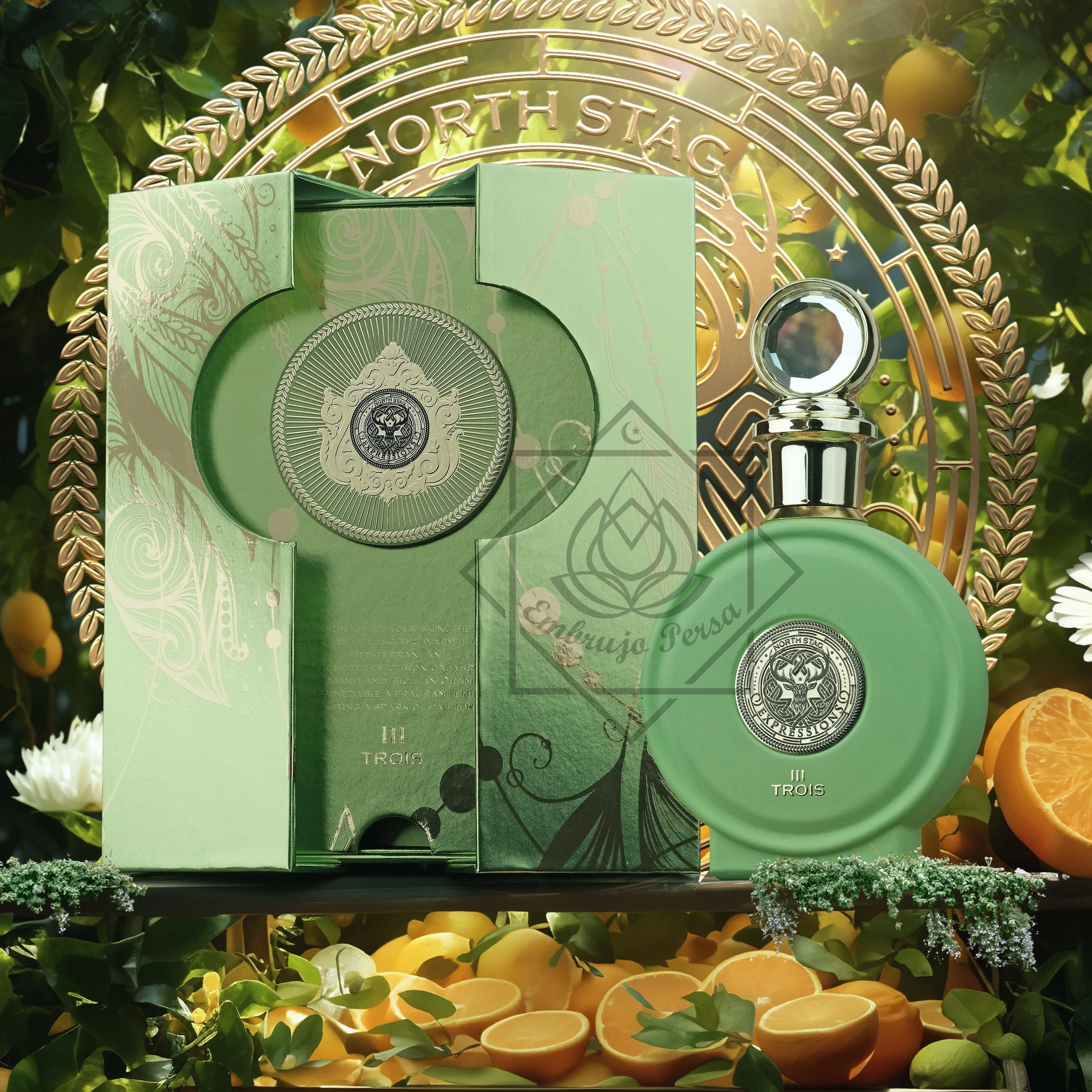 • Notas de fondo: Té negro, ambroxán, madera de guayaco y olíbano.